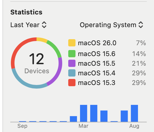 The Xcode statistics seem to show that it only happens with macOS 15.3 or newer. I don't know if it's because there's not enough space to show older releases, or if it's really a clue that it's a change introduced with macOS 15.3 that causes this issue.