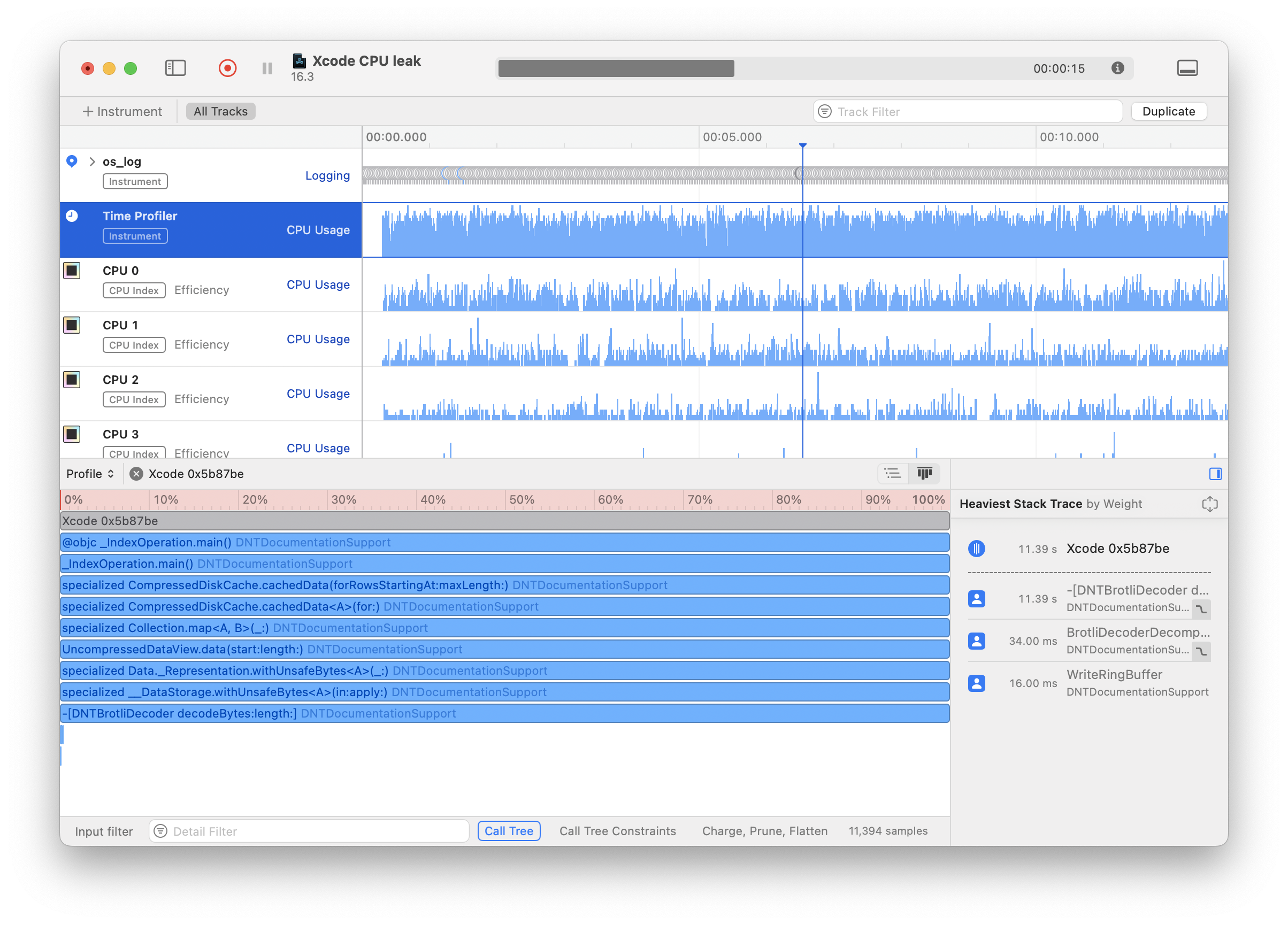Xcode 16.3 repeatedly logs a same message very frequently, as fast as a single thread can. I use Instruments and Console and find out the log is: