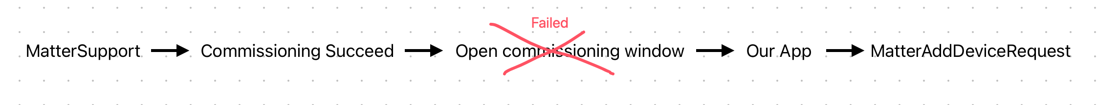@DTS Engineer Please refer to the image above. We trust that you have understood our issue: a failure in the intermediate process of MatterSupport has prevented our app from completing commissioning. We request your team to provide a "reOpen commissioning window" API to enable us to re-open the pairing window and retry the device addition process. Alternatively, please let us know if you have any better suggestions or solutions.