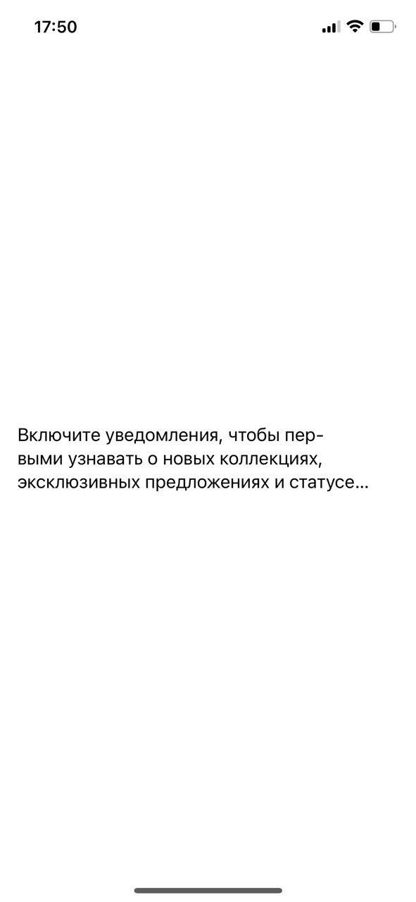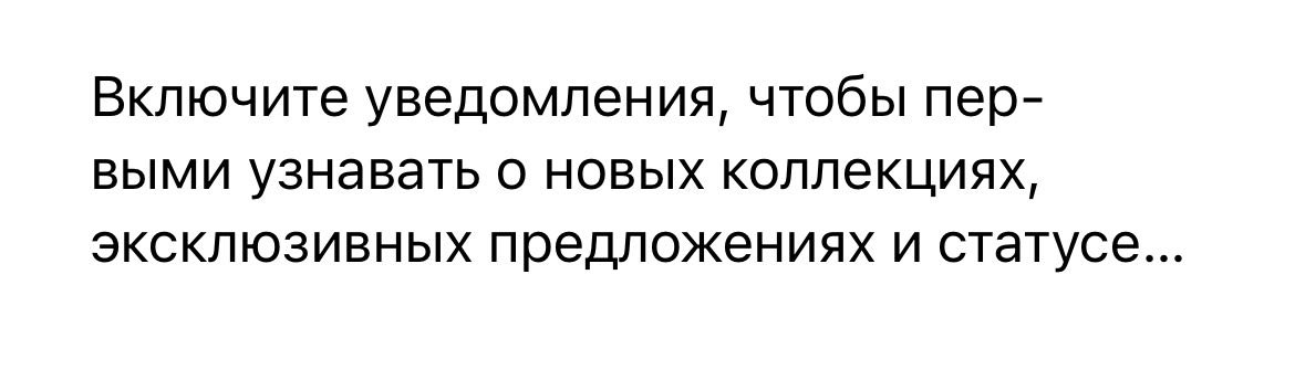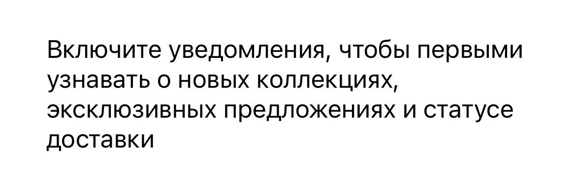 Text("Включите уведомления, чтобы первыми узнавать о новых коллекциях, эксклюзивных предложениях и статусе доставки")