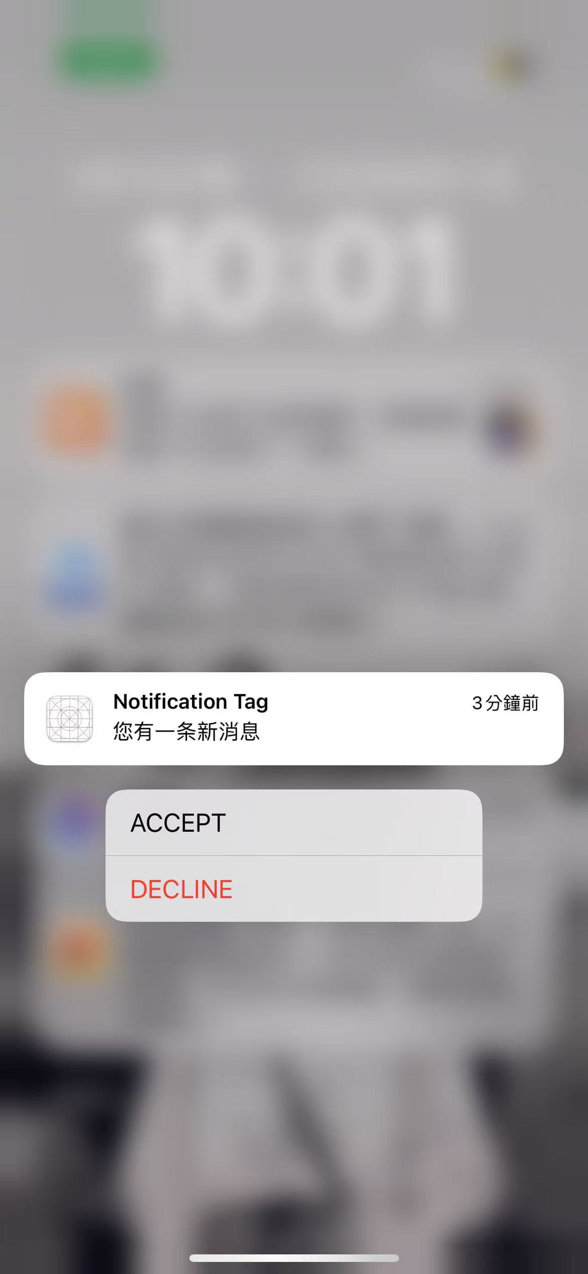 actions:@[actionAccept,actionDecline] // 可以添加多个动作