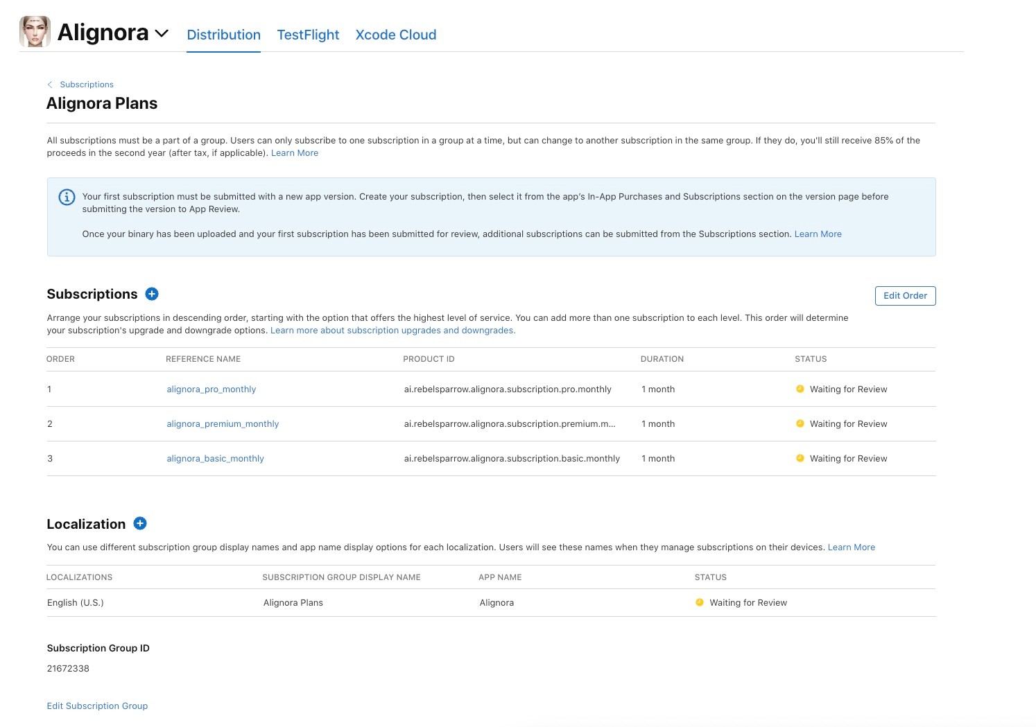 Hello Support Team, I submitted my testflight app Alignora for app review. App Name: Alignora Submission ID: 1c2b5168-bc07-4ad1-9382-f84852dc3792 The original build number that was associated with this review was 76.