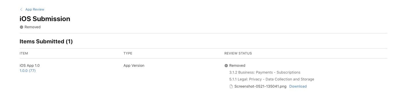 And strangely this new Build 77 that I submitted overwrote the App review build number from 76 to 77.