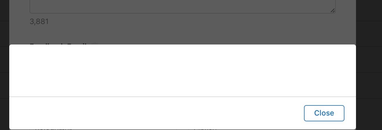 I'm trying to submit the first app for Beta Review to do Beta in Testflight, created a separate workflow for Beta Build and stuck at the step of filling in the "Information for Beta Review" form. After filling in all the fields and clicking "Save" it just shows me an empty popup with "Close" button, and I see that request for https://appstoreconnect.apple.com/ci/api/teams//testflight/information-v2?product_id=ACTUAL_ID_REPLACED_HERE is failing with 404.