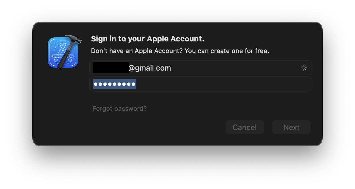 Xcode is stuck on sign-in window of adding a new Apple Account. Returns "unknown error occurred" after couple of hours
