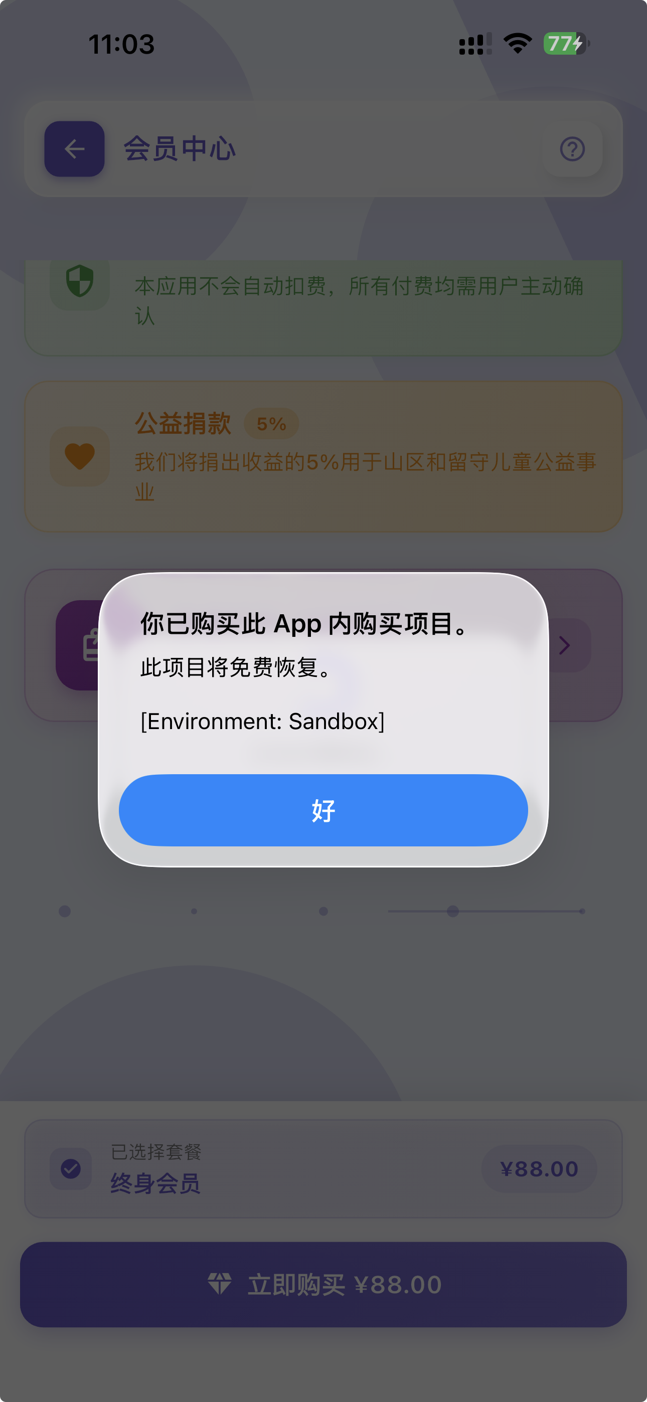 I can successfully purchase a product once but when I try to purchase it again, a popup "This In-App purchase has already been bought. It will be restored for free." appears and the first transaction is restored: the payment queue delegate is notified that a new transaction (with the same identifier as the successful transaction) is updated to the purchased state. I never get a purchased transaction with a new identifier and hence I consider that the purchase failed.
