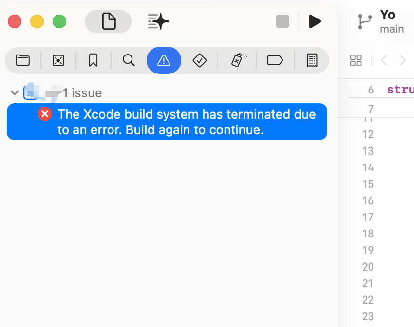 A empty macos project created using xcode. run build failed with the following error message. nothing in detail. retry no help.