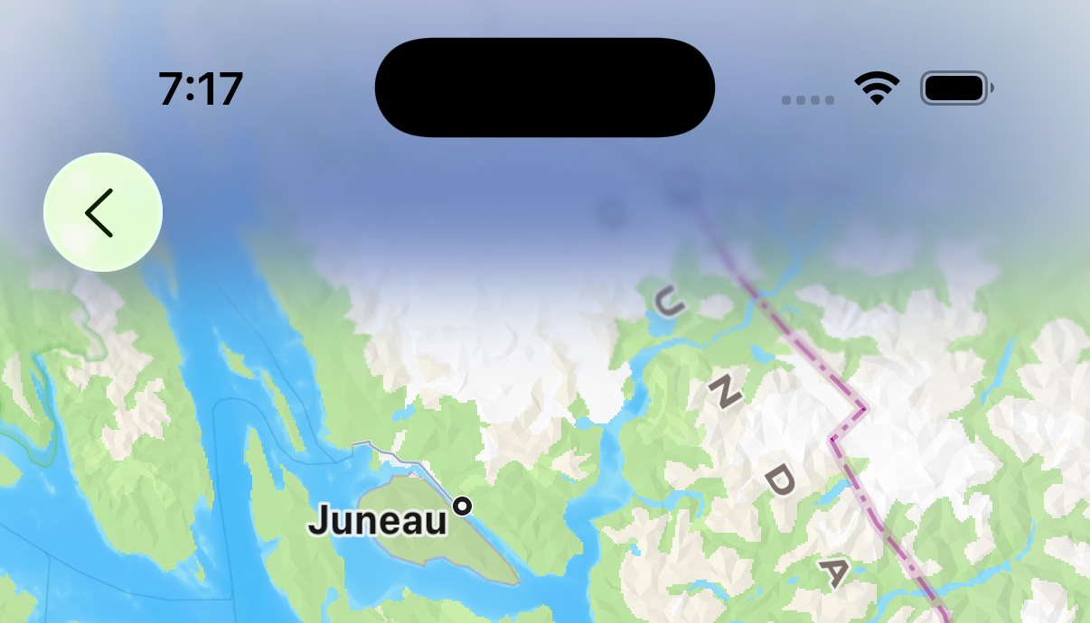 In Xcode26/iOS26, within an navigation stack, I have a background view that fills the whole screen and the top half is covered by a map view that extends to the edge of the top of the screen. The blurring effect is displaying the blurred background and not the blurred map. Is this expected behavior or a possible bug?