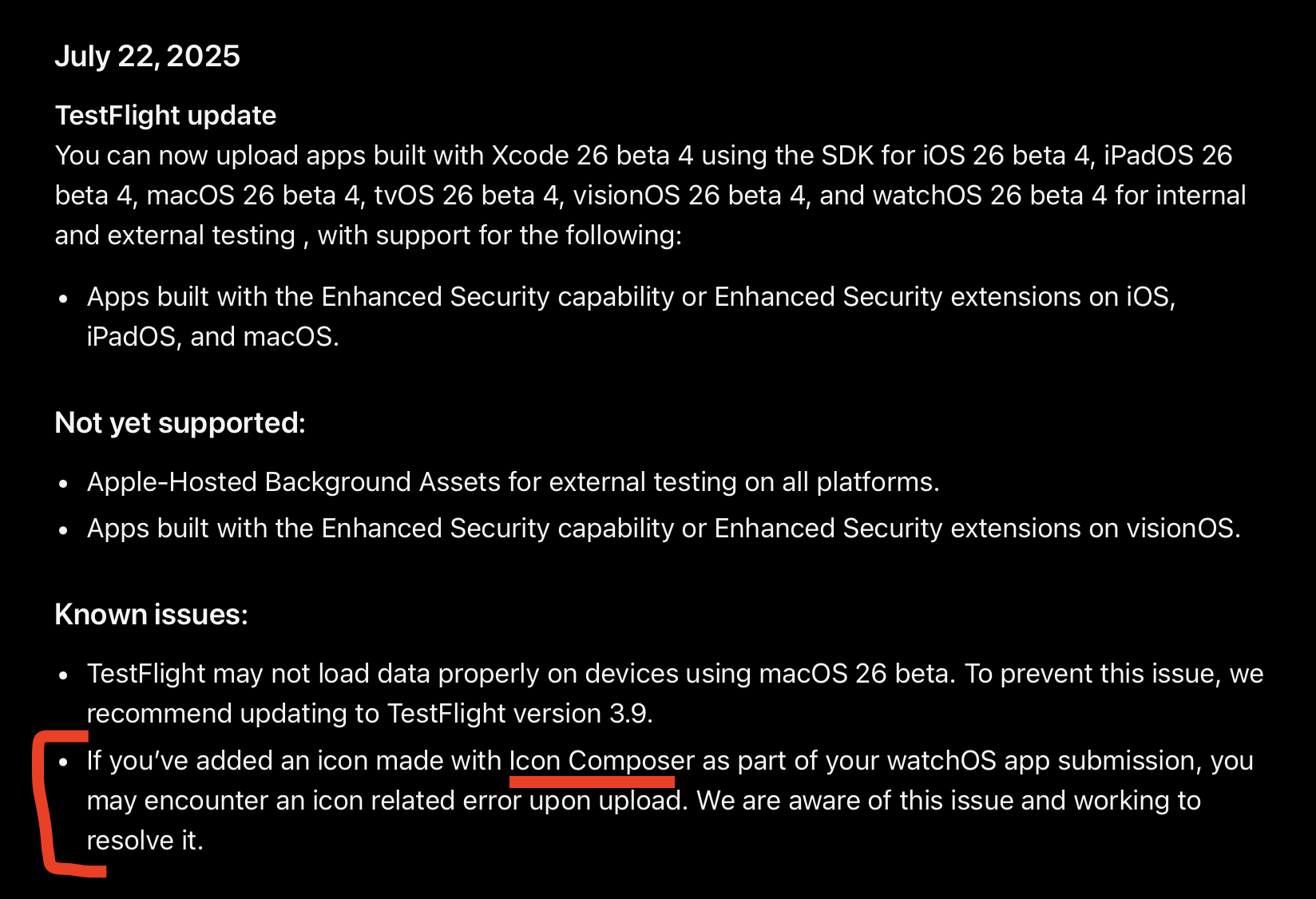 My two cents, it might be due to the automated compiler for the apple App Store distribution SDK they use to review apps quickly before it goes to a real person. This might be due to the new Liquid Glass UX/UI update.