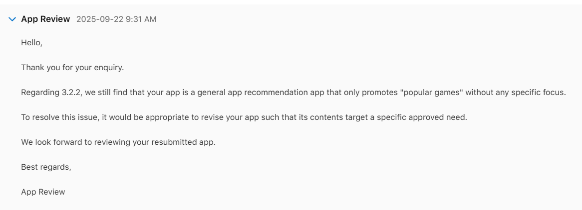 Hello, I have a question. What exactly is bothering Apple? The app doesn't sell anything, nor does it allow users to download games; it's purely an informational app.