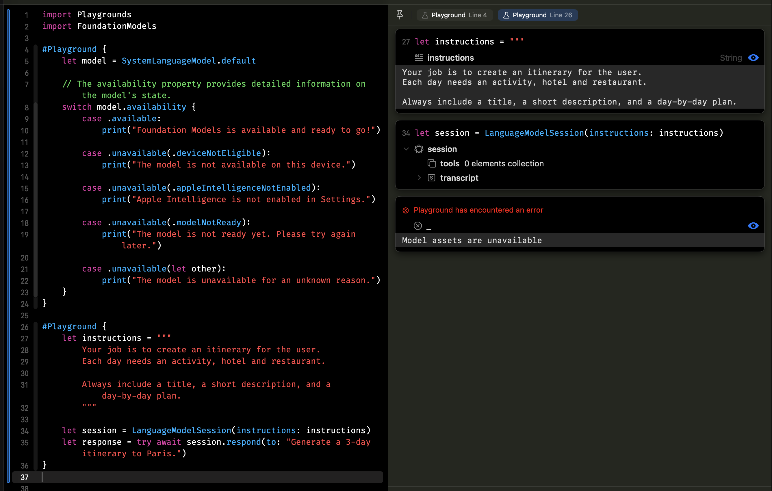 Hello, I was trying to test out Foundation Model however it says Model assets are unavailable. I got my MacBook M1 back in China when i was living there. is this due to region lock?