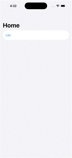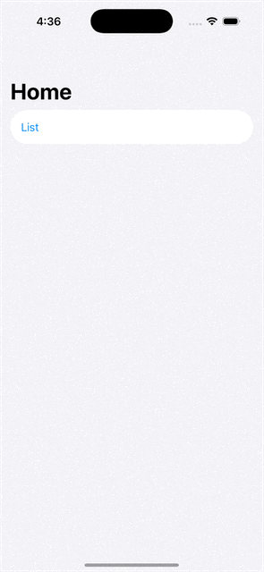 In this second example, the searchable modifier is focused and a selection from the list is made. In the final screen, if I attempt to return home we can see that the navigation path size decreases but the view does not change. If the button is pressed again, we attempt to remove path items that no longer exist, causing a fatal error.