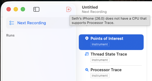 Going off of the Optimize CPU performance with Instruments WWDC session, the toggle for it should be under Developer > Performance, but I don’t see this option anywhere on my iPhone 17. I can’t run a Processor Trace in Instruments without this feature turned on, because it claims my iPhone’s CPU is unsupported.