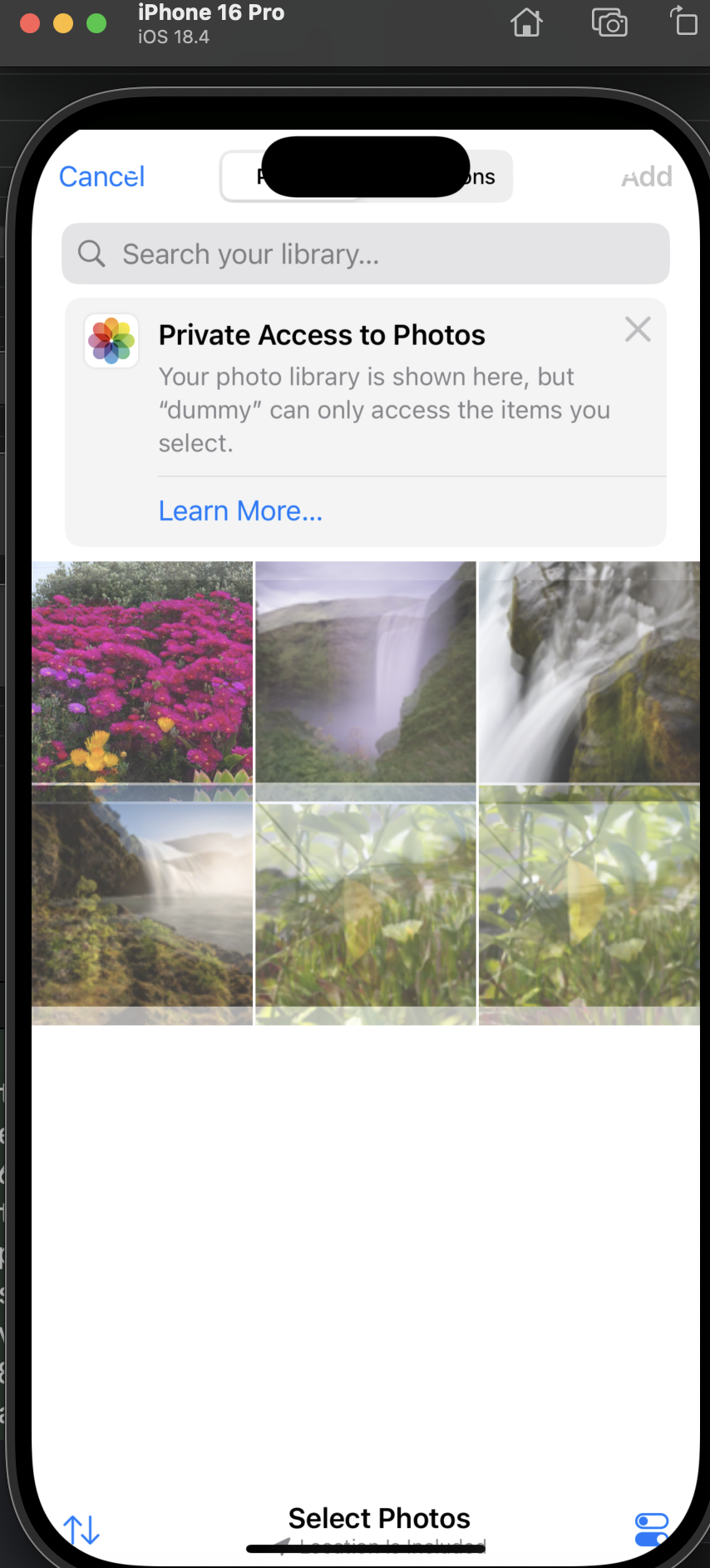 I am trying to run my app where I present PHPickerViewController for picking images from PhotoLibrary. I am running this from Xcode 16.2 on a simulator. As soon as PHPickerViewController is presented I see that the app freezes. This only happens on simulator of iOS version 18.