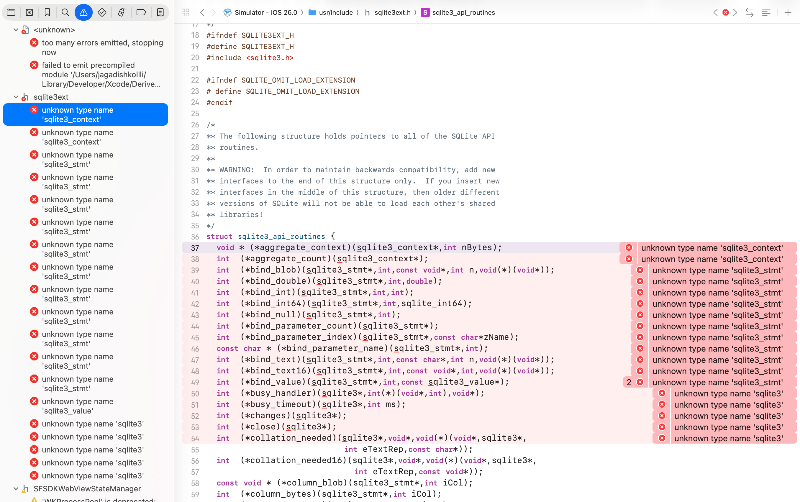 I have been using the Mixpanel-Swift SDK alongside the Salesforce Mobile SDK in my iOS project with Xcode 16.4 without any issues. However, after upgrading to Xcode 26, I started encountering a problem related to SQLite3.