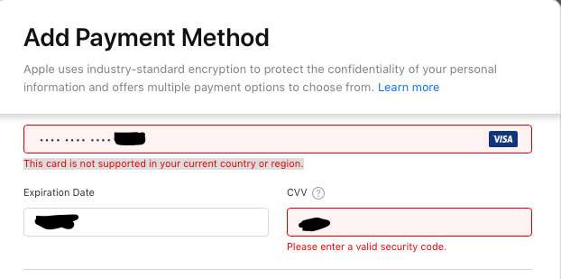 Apple Search ADs showing this error for adding a credit card based out of India.