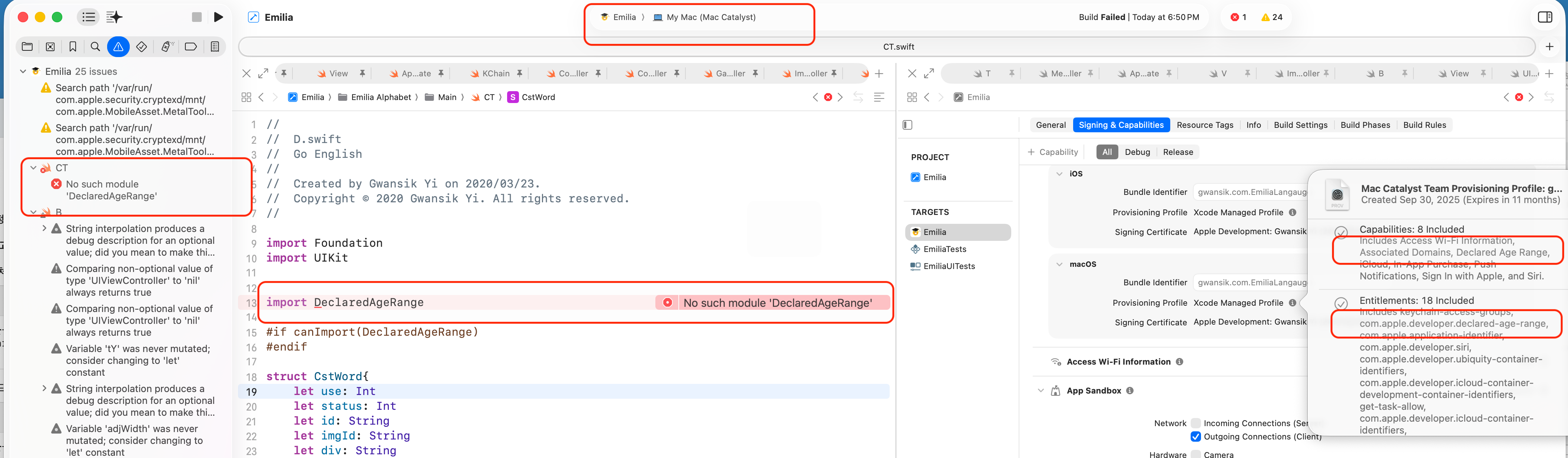 However, when I build the Mac Catalyst target, I get compile-time errors because DeclaredAgeRange cannot be imported.