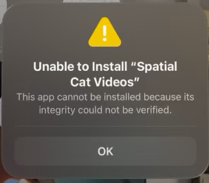 With which, I managed to upload the app with the extension to TestFlight. However, when I tried installing the app on TestFlight to Vision Pro, it gives me an error that says the app cannot be verified.
