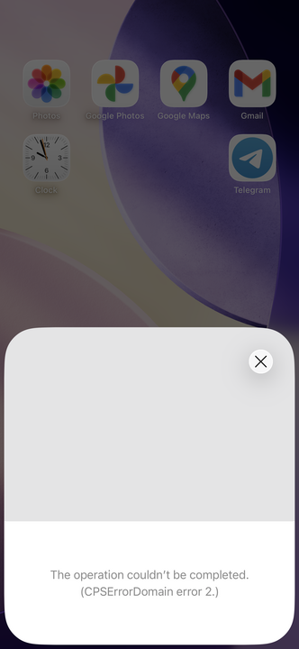 - /bar (the one that doesn't have app clip associated with it) -- opens an App-Clip-like popup with the following error: CPSErrorDomainError 2 (see attachment below)