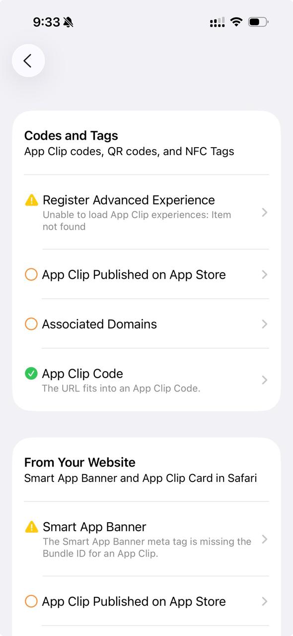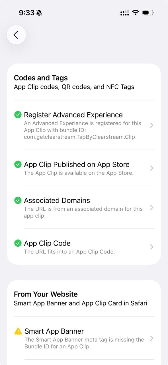The /foo link does have an App Clip associated with it while /bar does not have it. Each link has been encoded into appropriate NFC tag.