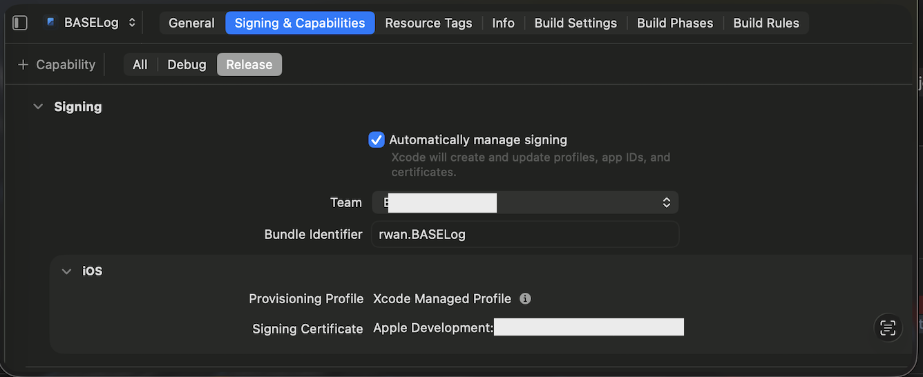 even though certificats seems ok, in Xcode I see a dev certificate in the managed release