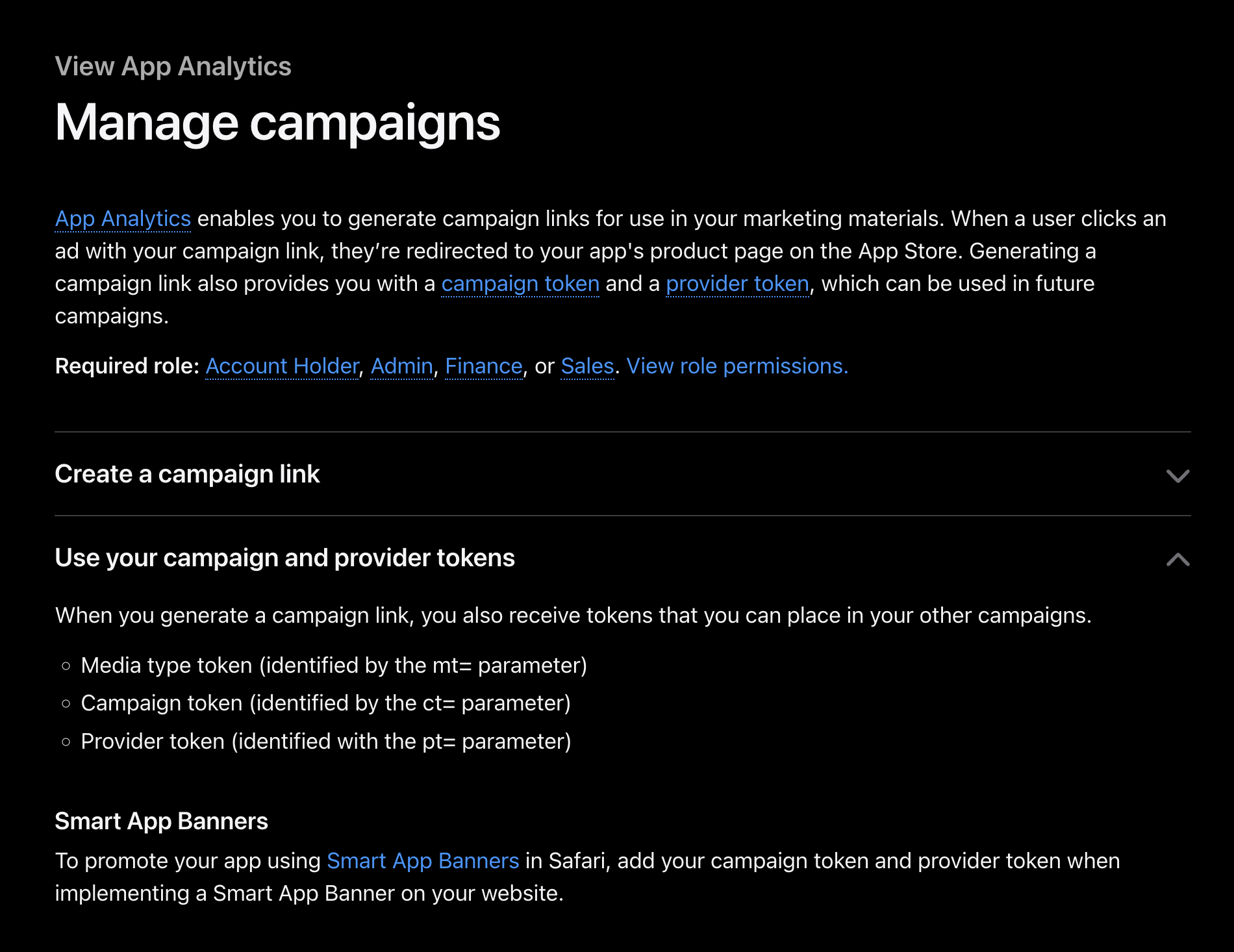 Apple documentation (https://developer.apple.com/help/app-store-connect/view-app-analytics/manage-campaigns/) says you can set up a campaign link and use it in the Smart Banner to track those who download / open the app store page using your smart banner (so that we can get attribution).