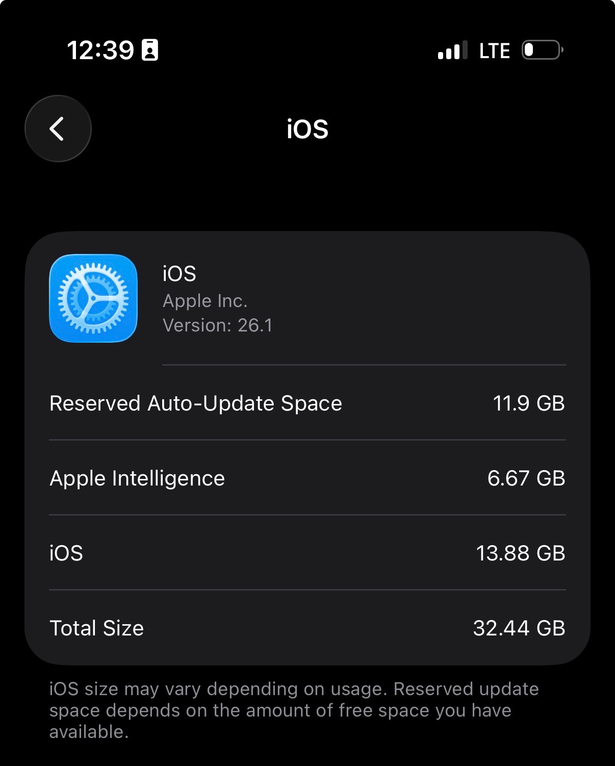 Already another instance of “why am I having to lose so much of my functional capacity to an occasional process?” but I can understand the utility of this — if I didn’t still have to offload basically all my apps every single time I run a software update, because I’m still some not-insignificant amount short. I seem to recall it being between 6-20 GB across the different updates I’ve had to do since iOS 26 rolled around. I’d also like to be clear that preprovisioning the storage space for updates isn’t a bad idea, just give us an off switch if we’d rather be able to take a few hundred more photos, have another few apps, etc. than have the space sit mostly unused.