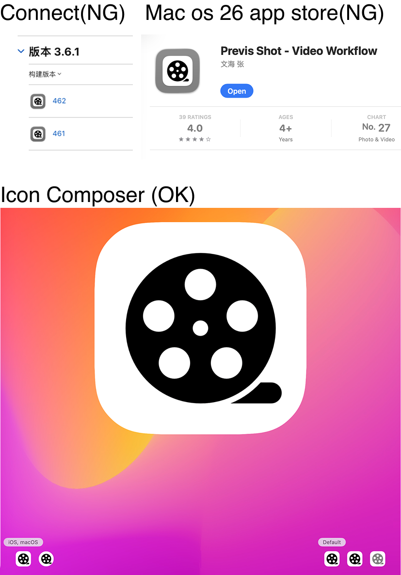However, in App Store Connect and in the Mac App Store on macOS 26, the icon appears with a gray border.