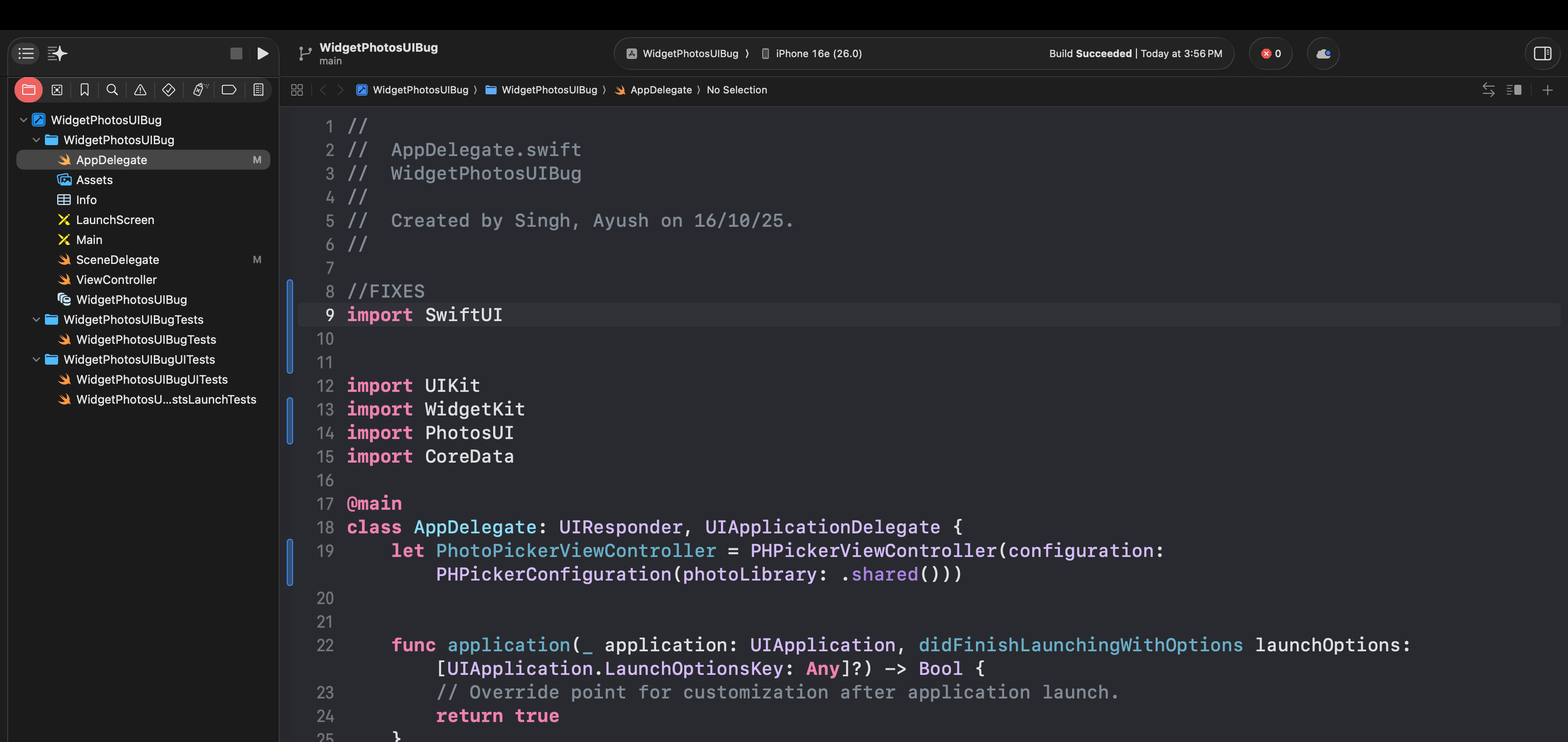 It was possible to have a swift file with both WidgetKit implementations and PhotosUI implementations. This behavior has changed in Xcode 26/26.0.1 .