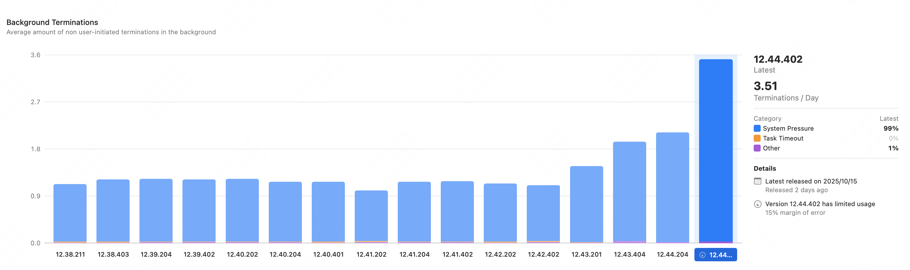 In recent versions, the increase in background abnormal exits is significant. According to monitoring data, it is closely related to the iOS 26 system. Could you please look into the reasons or provide some suggestions for troubleshooting the issue?