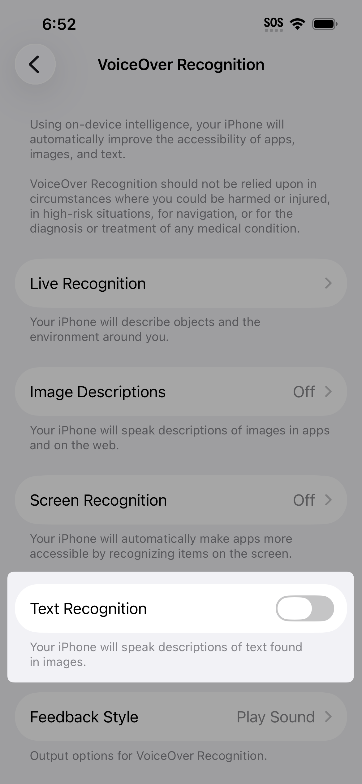 In the example below, VoiceOver (in both iOS 18 and 26) reads the text contained within the image after the .accessibilityLabel, introduced by a “beep.”