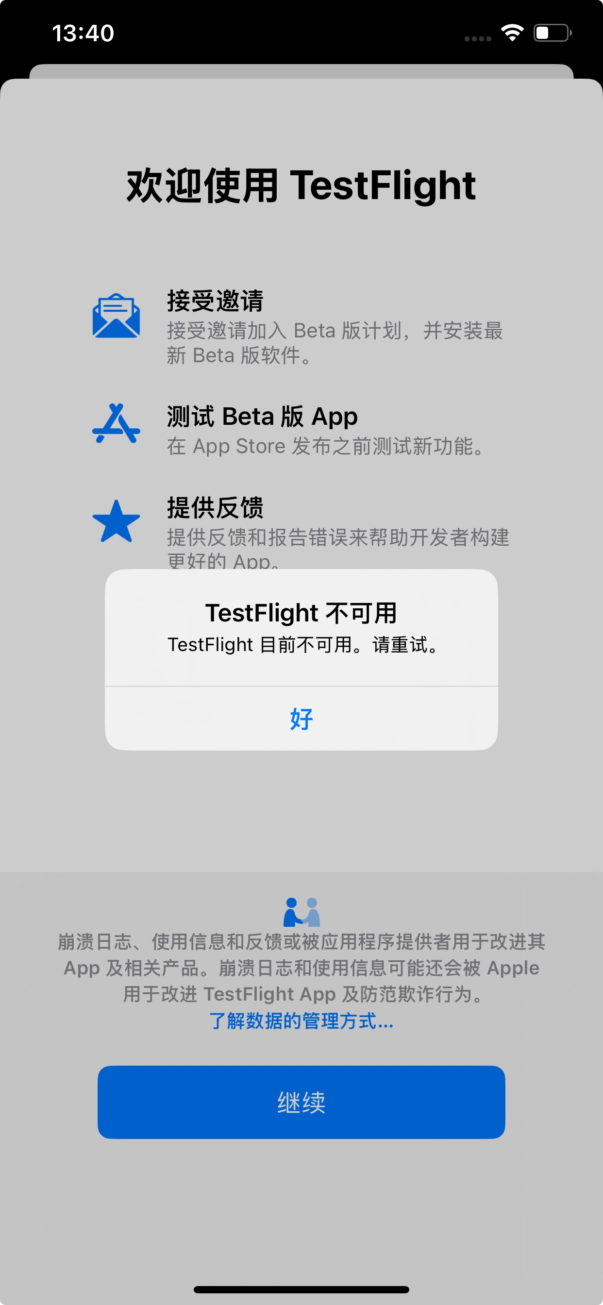 testflight不可用
