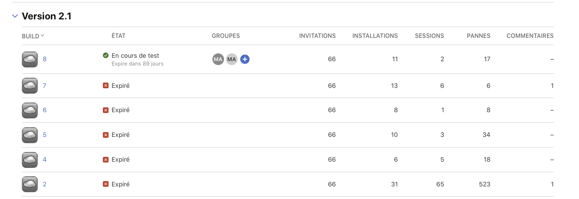 I waited a few days before checking if these files arrived, but no, nothing, or just 3 useful crash reports, but not in the same number as this screenshot. There is an inconsistency between this table and my xcode. And I cannot select version 2.1 in the other part of the site, the one where you can download the crashes.