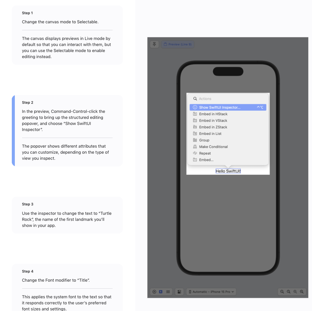 I've reset and reinstalled Xcode several times, reset finder files for Xcode, but the options in the Swift tutorial aren't showing up