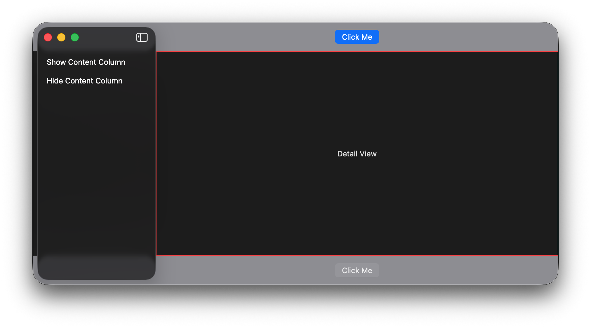 I'm trying to create a UI with two button bars (top and bottom) inside the detail view of a NavigationSplitView