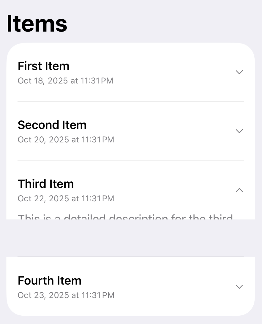 description: "This is a detailed description for the third item. Tap to expand and see more details here."