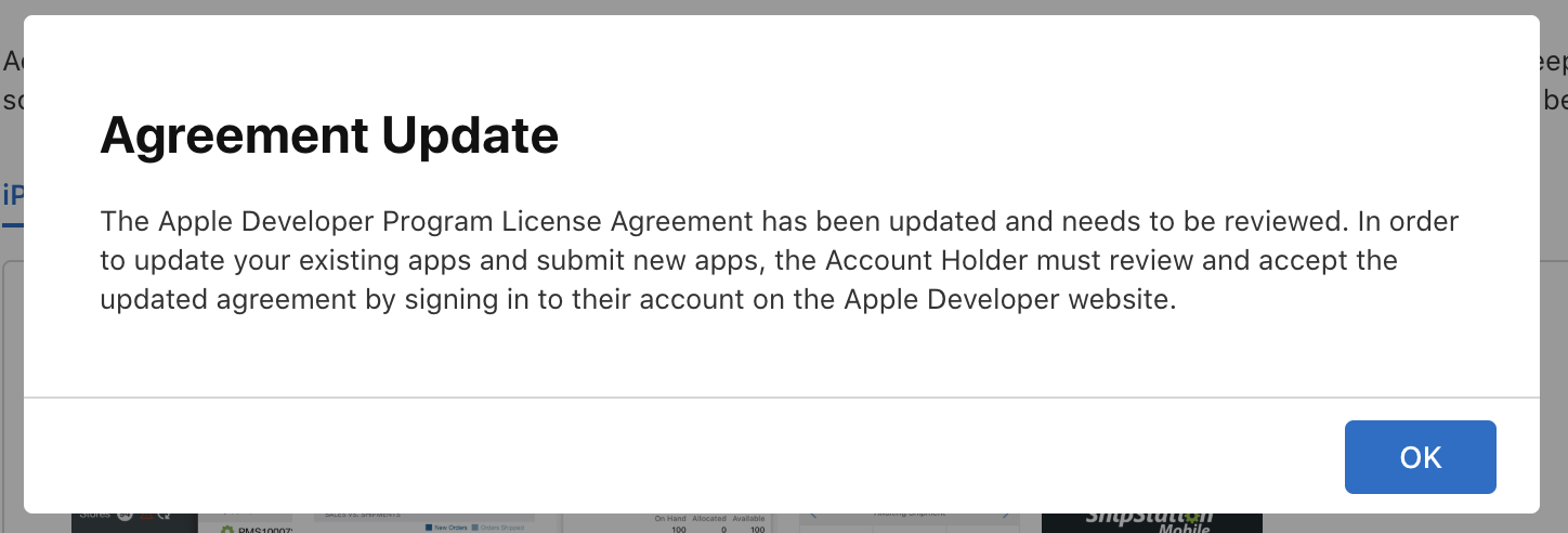 I am trying to create a new distribution version in the App Store connect but keep on getting a pop-up prohibiting me from doing so because it says I have to agree to an updated agreement on the Apple Developer website.