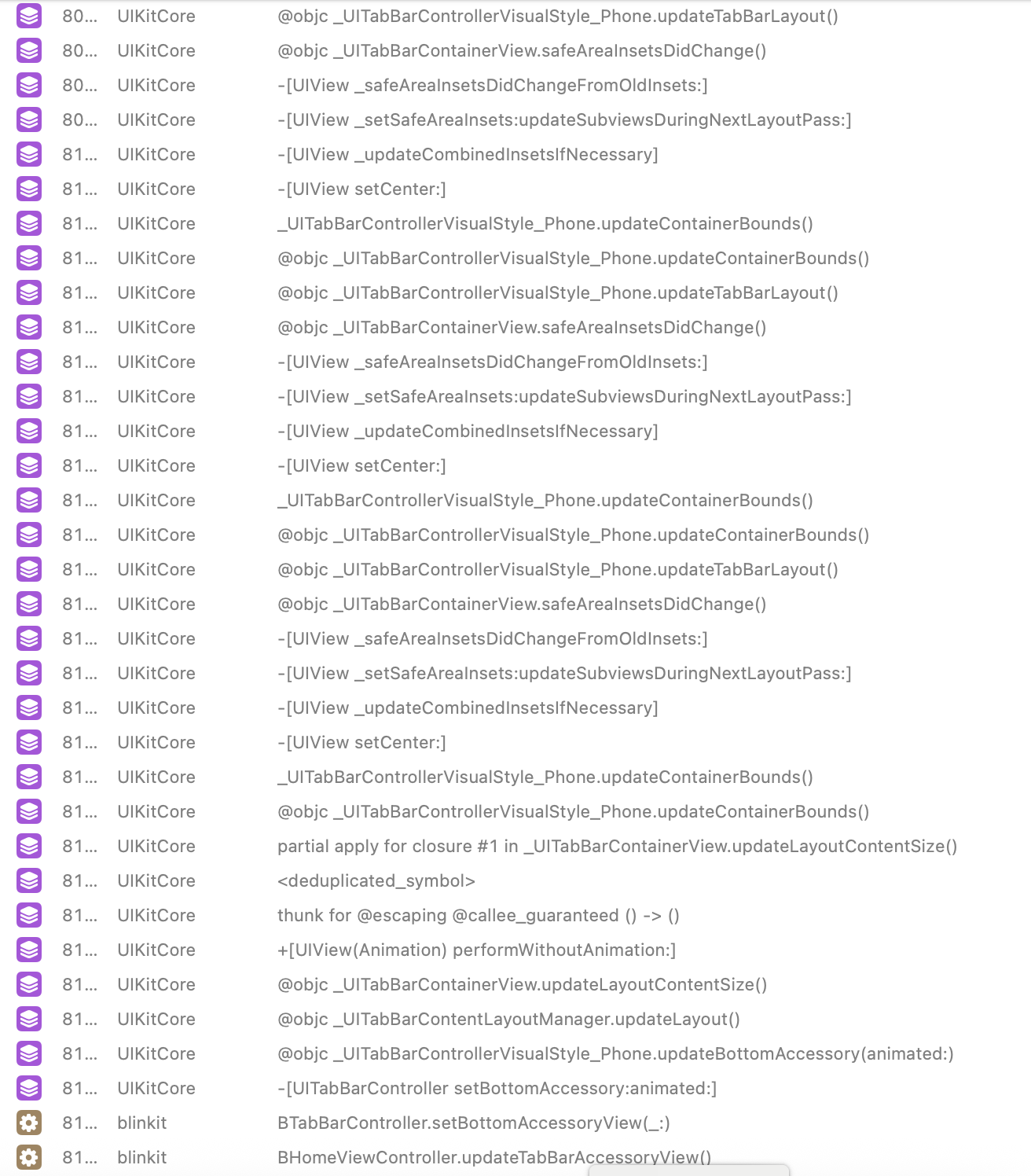 Setting up UITabAccessory via setBottomAccessory(_:animated:) causing recursion internally on iPhone Air which is leading into a crash. Sharing crash log & feedback below...