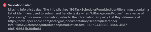 I need help with the Upload of my Project to AppStore Connect. I’ve got an Error Message, that tells me something is missing in the Info.plist file. Can somebody help me?