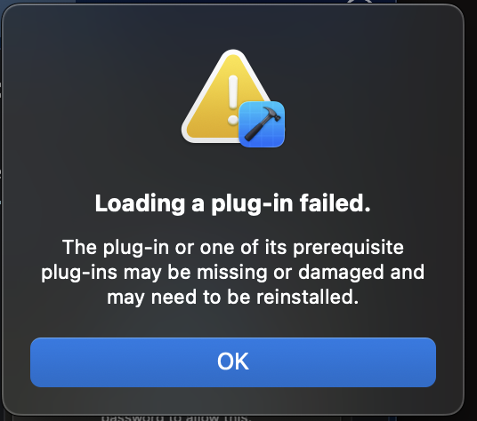 I have recently upgraded my Silicon Mac Laptop from MacOS 15.3 (Sequoia) to MacOS 26 (Tahoe). Since existing Xcode 16.2 is not compatible with MacOS 26, i installed Xcode 26.0.1 but after the successful installaton the application is not working and quits after the erorr dialog "Loading a Plugin Failed." (Screenshot attached). I tried resatring/reinstalling the Xcode 26.0.1 but no luck.