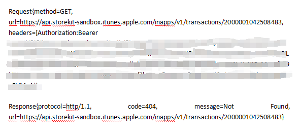 Currently, we are using the Apple V2 interface to develop the payment function. We generate a transaction ID on the mobile client and obtain the receipt. Now, when we call the Apple sandbox environment interface to verify the receipt, we always get a 404 error. The above is the request and response. The token used in it is also the original data after decoding, and there is no problem. Could you help me figure out what other possible reasons there might be?