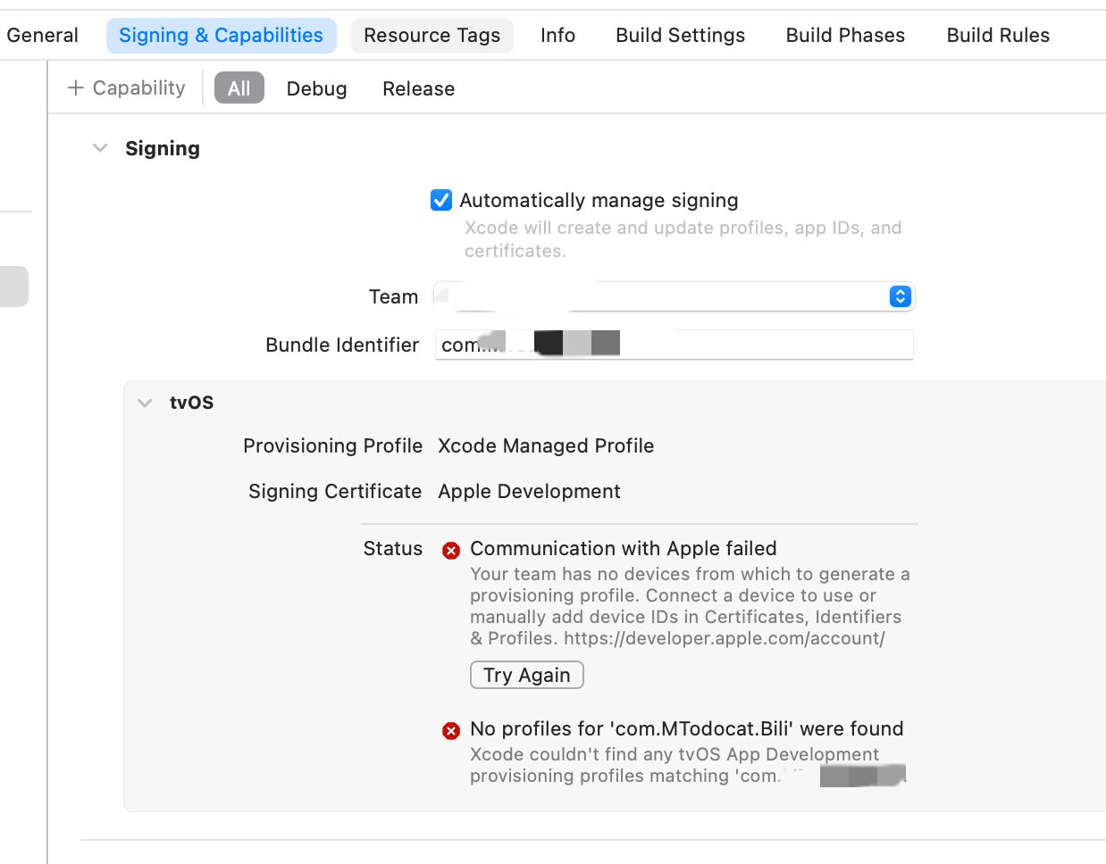 ‘Your team has no devices from which to generate a provisioning profile. Connect a device to use or manually add device IDs in Certificates, Identifiers & Profiles. https://developer.apple.com/account/ Xcode couldn't find any tvOS App Development provisioning profiles matching ’ I followed the instructions and created it manually, but it still doesn't work. Why is that? I remember it used to be created automatically and take effect right away.