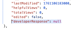 Actual result: the reply should appear underneath the review as "Developer Response" or "Developer Response Pending"