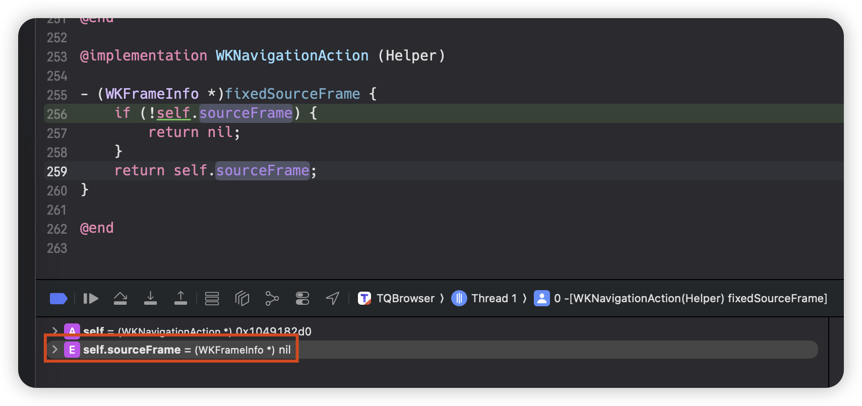 print(navigationAction.sourceFrame) // ← crashes on 15.4 & 16.6