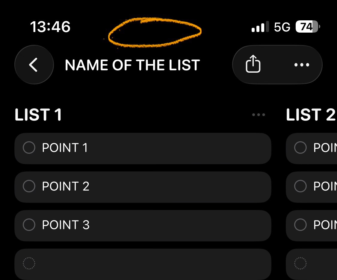 When you tap the list title in this yellow area in the Reminders app, the rows shift in an awkward/undesirable way. This may be a problem specific to older iPhone versions 12-15.