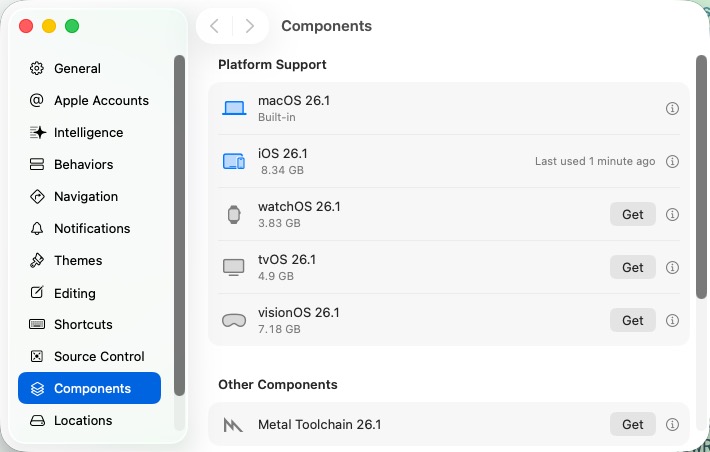 I am using MacOS 26.1 and Xcode 26.1; my existing project cannot select a simulator, but creating a new project allows me to select a simulator normally.