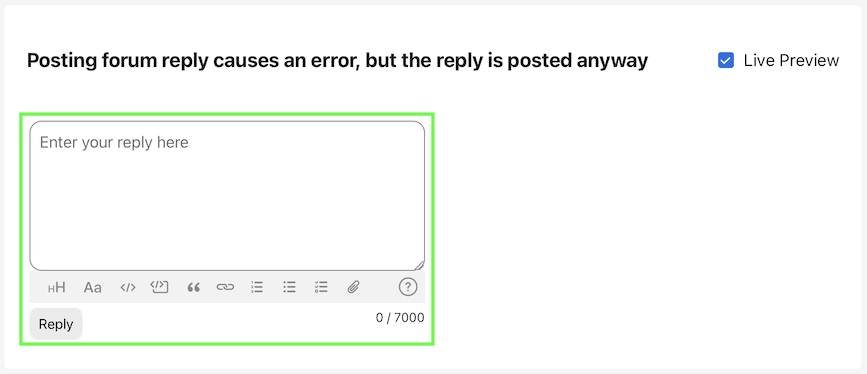 Somehow similar issue occurred to me some time ago when trying to reply. Reply did not show, no error message but reply was registered. Leading to duplicate posts as I retried.