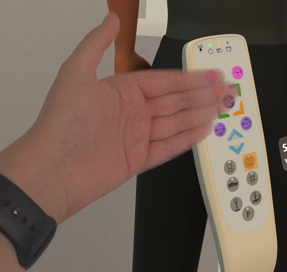 I use ARKit's hand tracking to attach a 3D model of a remote control to the left hand. The user is supposed to press buttons on the remote control. In the Vision Pro settings, I have removed the left hand from Hands & Eye Tracking. Only the right hand is used. The problem now is that the left hand appears and the 3D model of the remote control fades out. I want the remote control to be completely visible. The user should feel like they really have the remote control in their hand. Can I prevent the fading out?