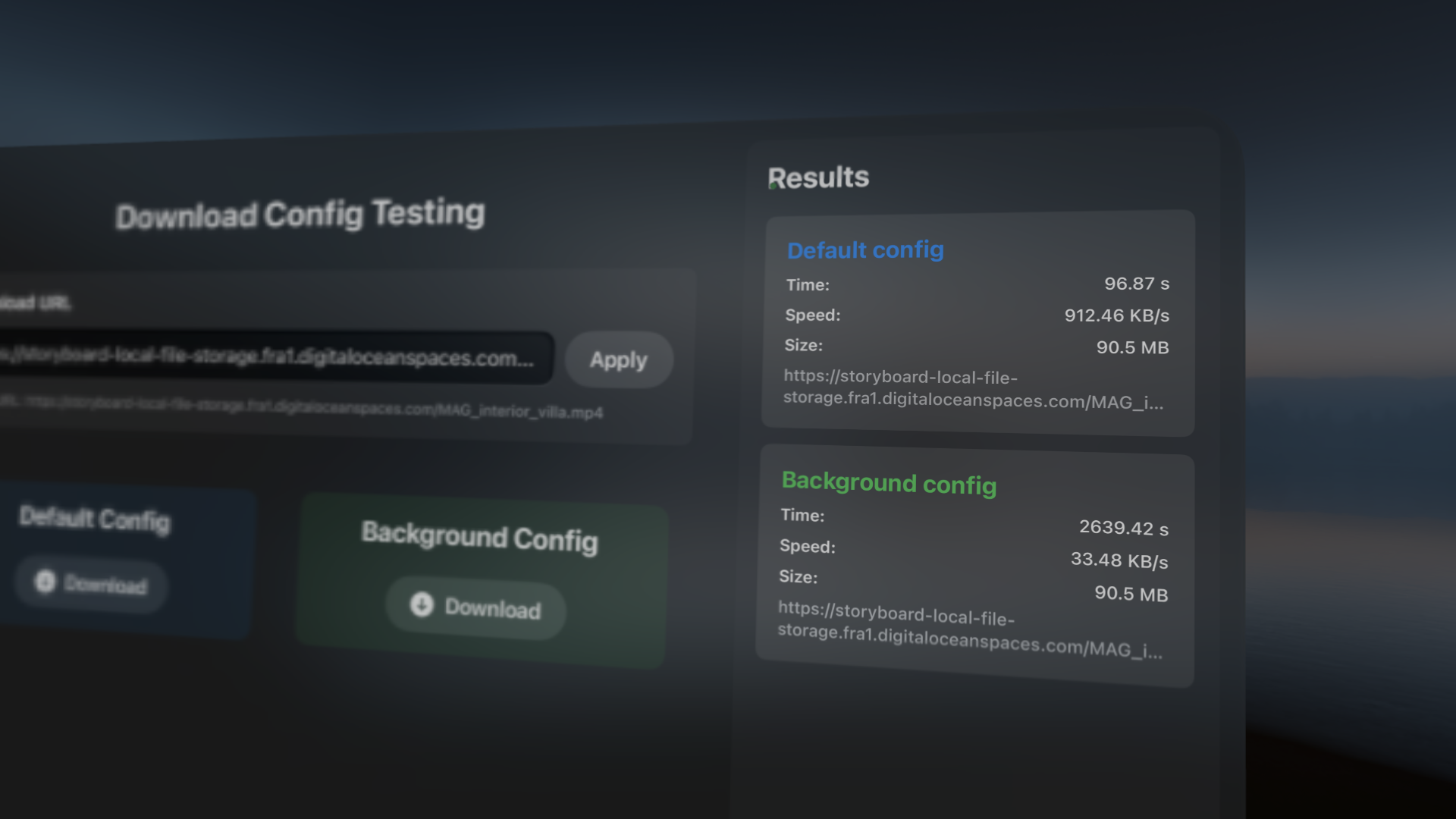 I’ve run into a consistent issue on multiple Apple Vision Pro devices where downloads using URLSessionConfiguration.background are between 4× and 10x slower than when using URLSessionConfiguration.default. This issue is systematic and can easily be reproduced.