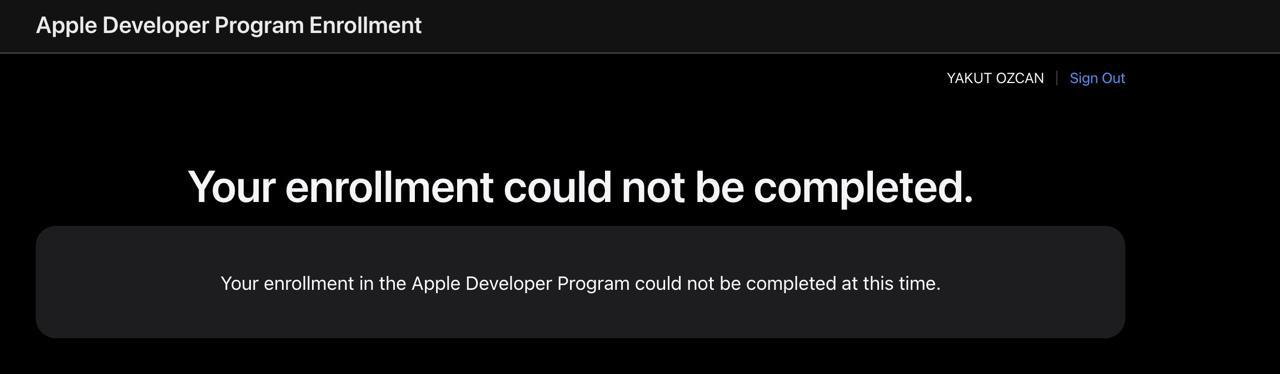When I try to join the Apple Developer Program, I get this error and there is no reason for it. I am looking for a solution.